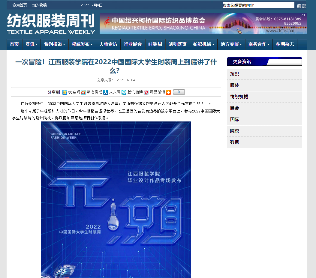 纺织服装周刊对此进行了报道,以下为新闻链接:
