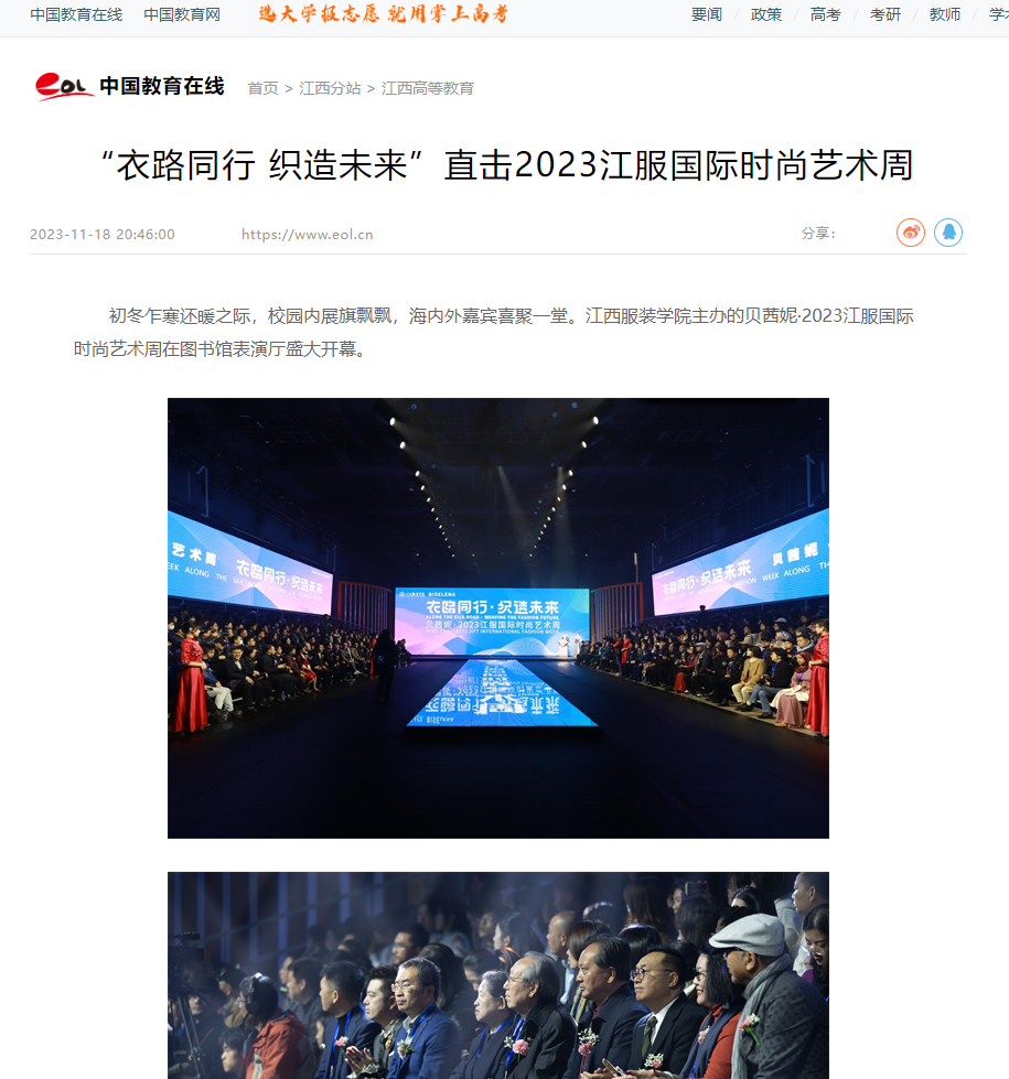 中国教育在线:“衣路同行 织造未来”直击2023江服国际时尚艺术周