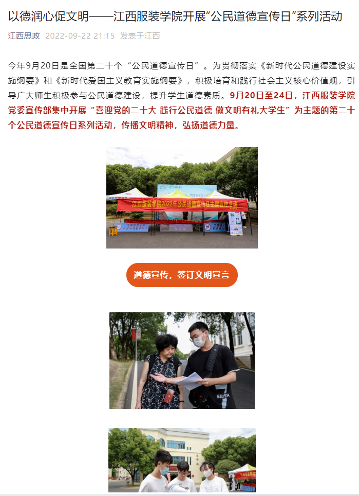 江西思政:以德润心促文明——万象城平台开展“公民道德宣传日”系列活动