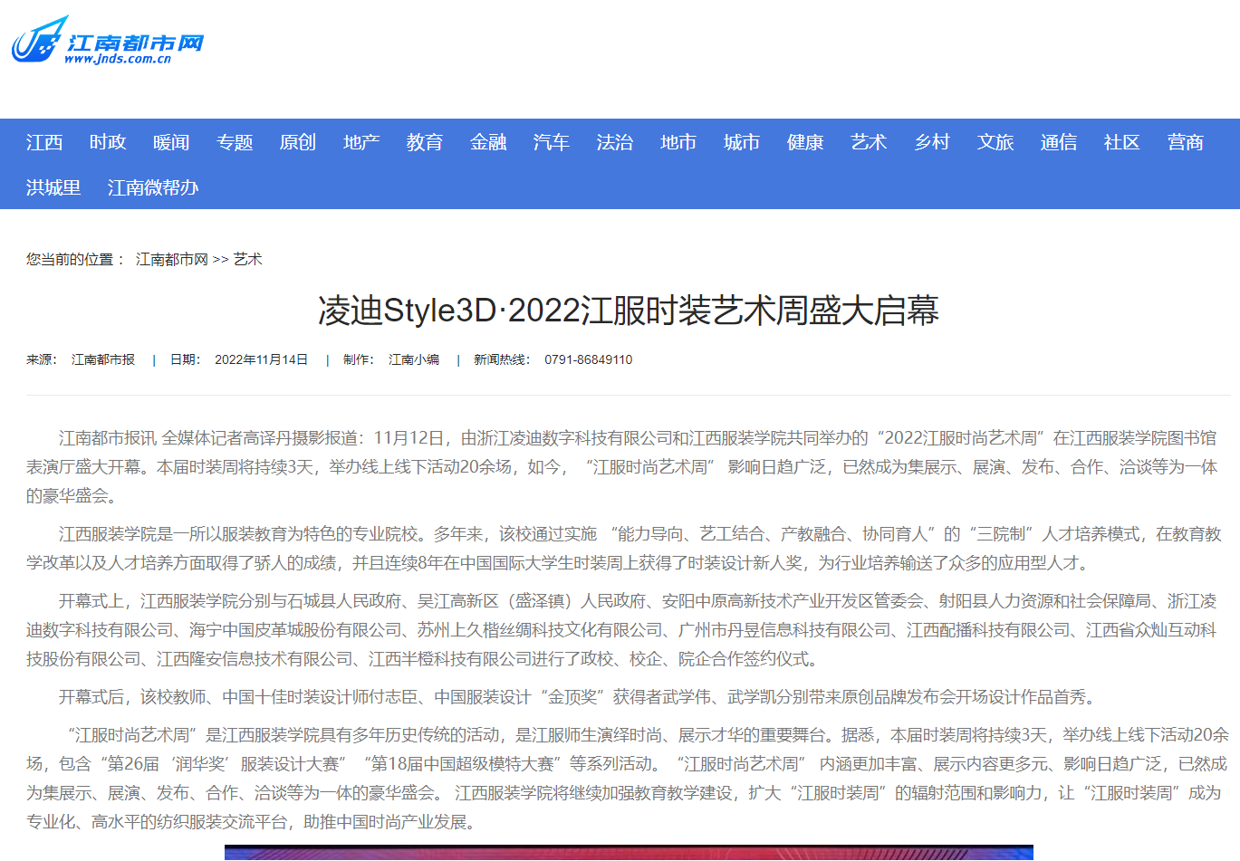 江南都市报:凌迪Style3D·2022江服时装艺术周盛大启幕