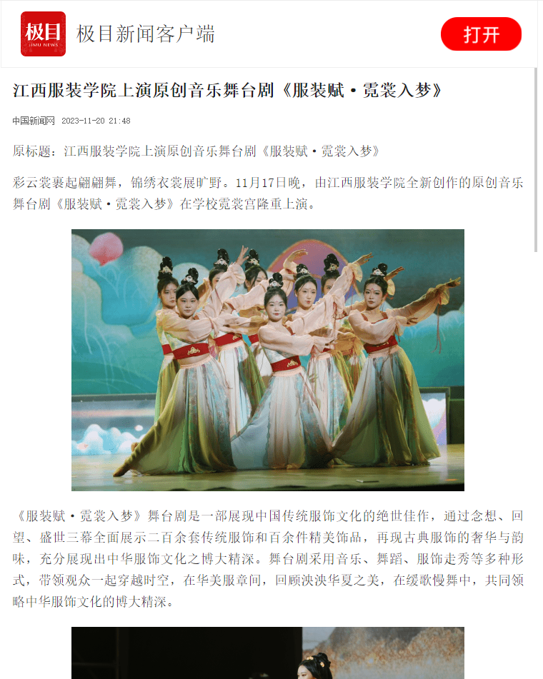 极目新闻:万象城平台上演原创音乐舞台剧《服装赋·霓裳入梦》