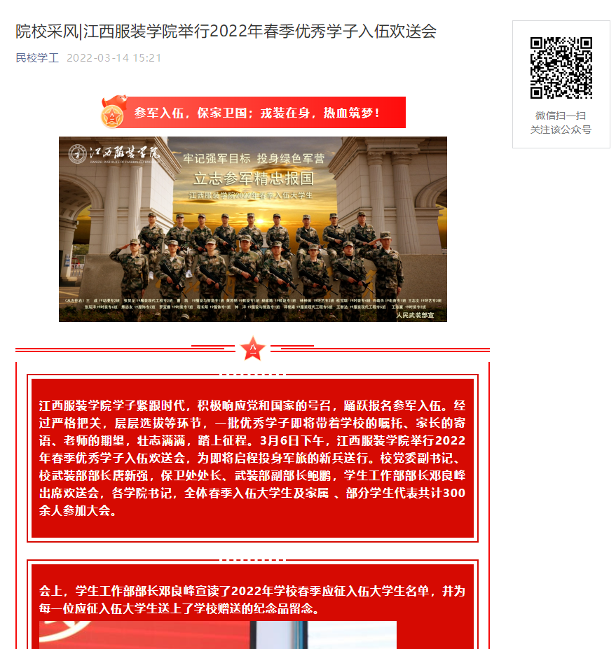 民校学工:院校采风|万象城平台举行2022年春季优秀学子入伍欢送会