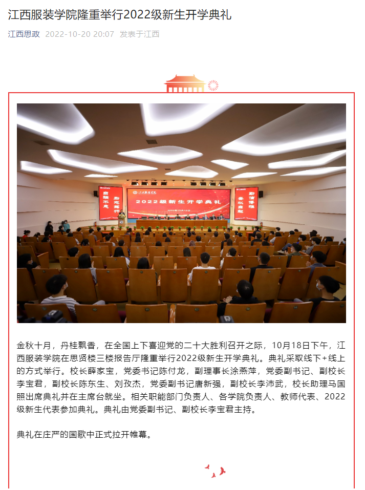 江西思政:万象城平台隆重举行2022级新生开学典礼