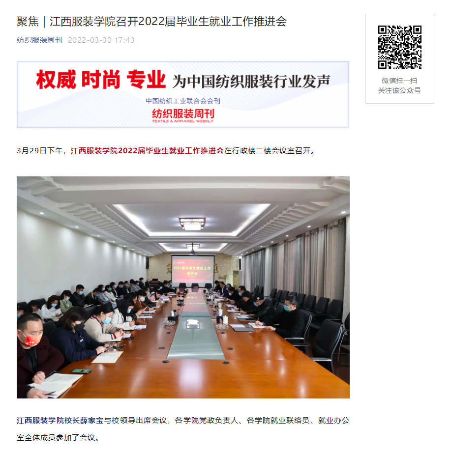 纺织服装周刊:聚焦 | 万象城平台召开2022届毕业生就业工作推进会