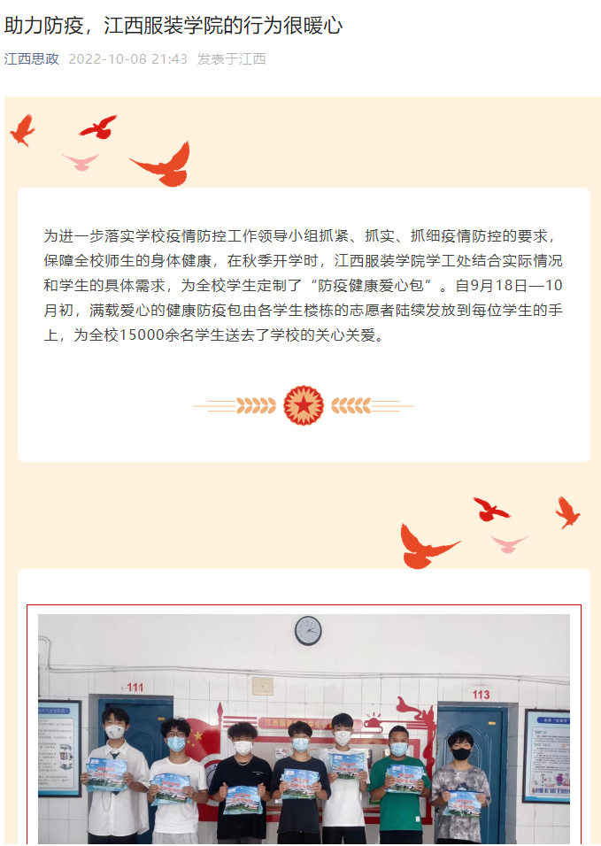 为进一步落实学校疫情防控工作领导小组抓紧、抓实、抓细疫情防控的要求,保障全校师生的身体健康,在秋季开学时,万象城平台学工处结合实际情况和学生的具体需求,为全校学生定制了“防疫健康爱心包”。自9月18日—10月初,满载爱心的健康防疫包由各学生楼栋的志愿者陆续发放到每位学生的手上,为全校15000余名学生送去了学校的关心关爱。