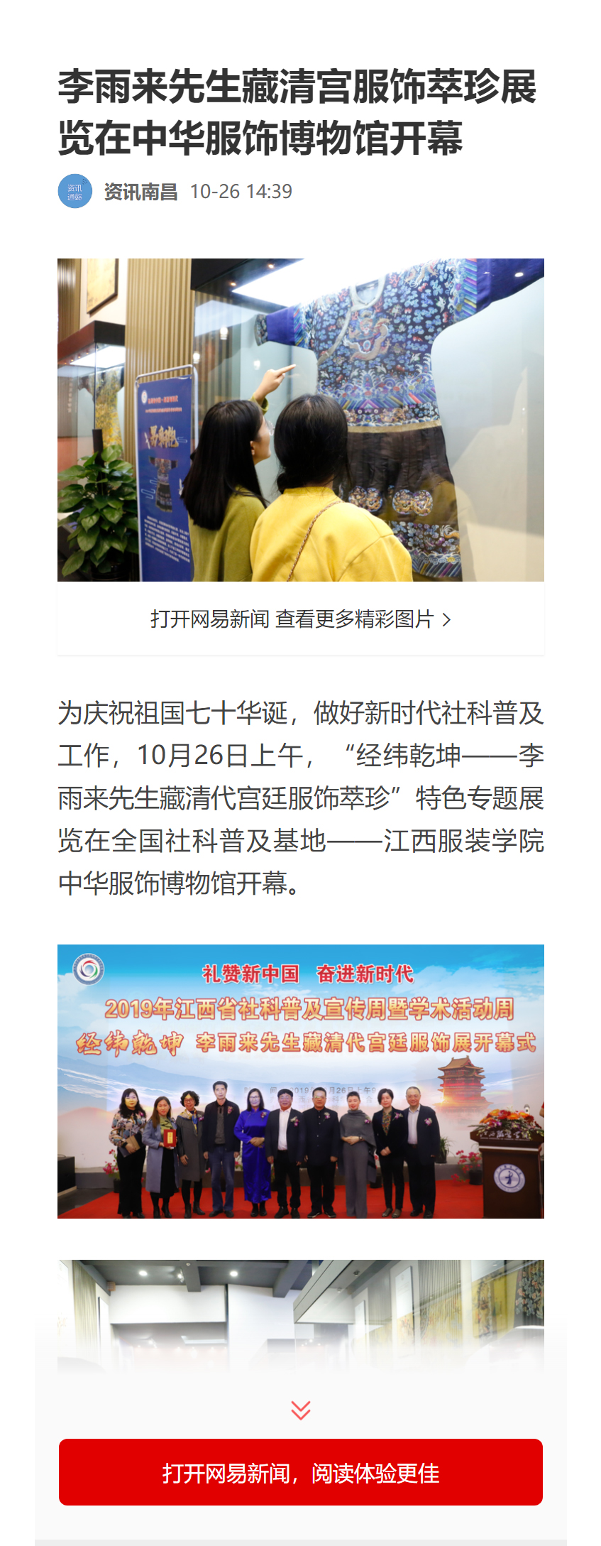 新闻链接:李雨来先生藏清宫服饰萃珍展览在中华服饰博物馆开幕
