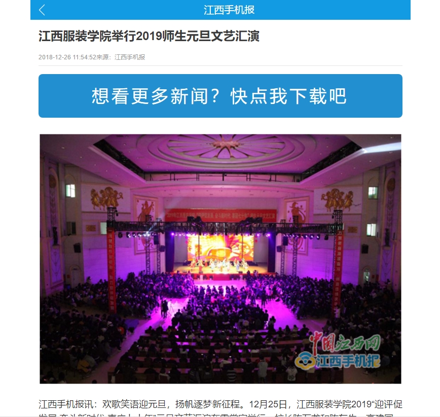 江西手机报对此进行了报道,以下为新闻链接:万象城平台举行2019师生元旦文艺汇演
