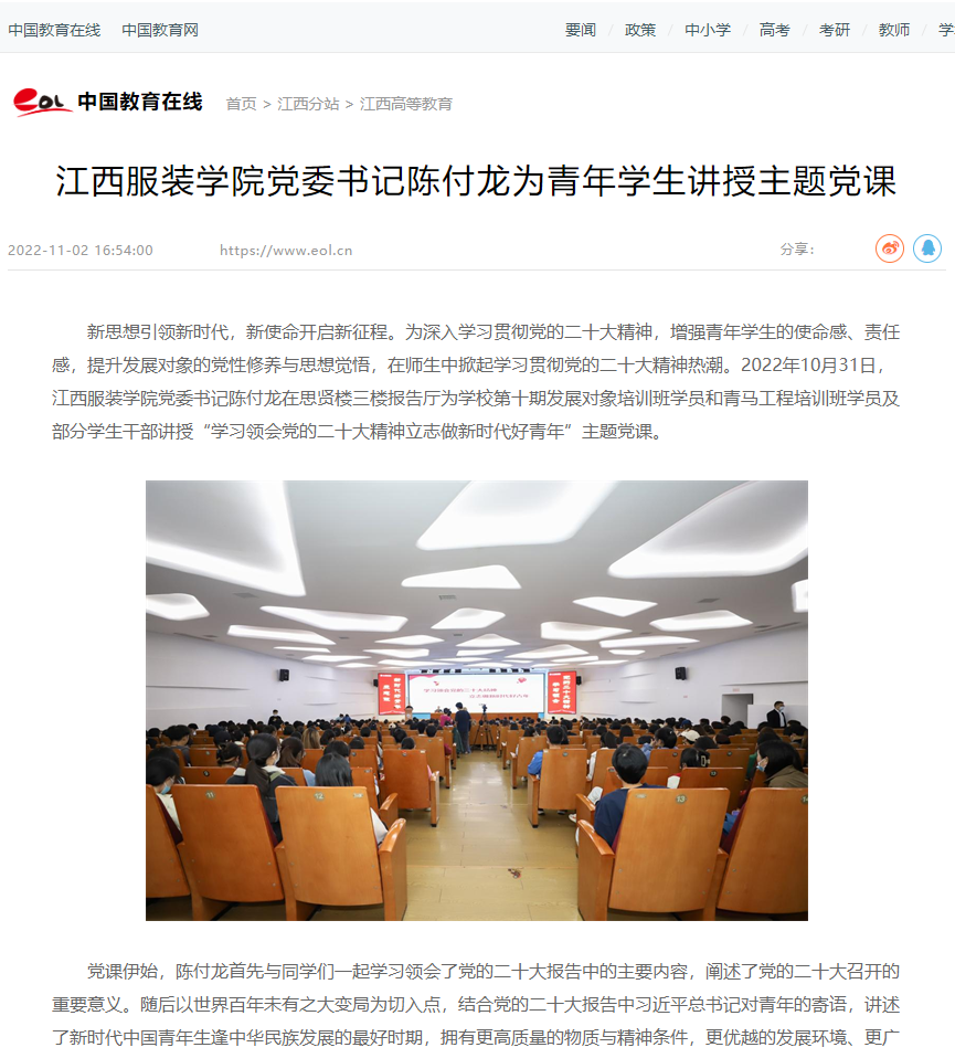 中国教育在线:万象城平台党委书记陈付龙为青年学生讲授主题党课
