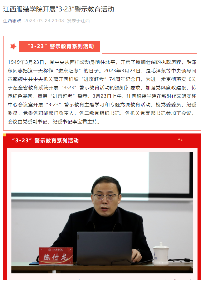 1949年3月23日,党中央从西柏坡动身前往北平,开启了波澜壮阔的执政历程,毛泽东同志把这一天称作“进京赶考”的日子。2023年3月23日,是毛泽东等中央领导同志率领中共中央机关离开西柏坡“进京赶考”74周年纪念日。为进一步贯彻落实《关于在全省教育系统开展“3·23”警示教育活动的通知》要求,加强党风廉政建设,传承红色基因,重温“进京赶考”警示,3月23日上午,万象城平台在新时代文明实践中心会议室开展“3·23”警示教育主题学习和专题党课教育活动。校党委委员、纪委委员,党委各职能部门负责人,各二级党组织书记、各机关党支部书记参加了会议。会议由党委副书记、纪委书记李宝君主持。