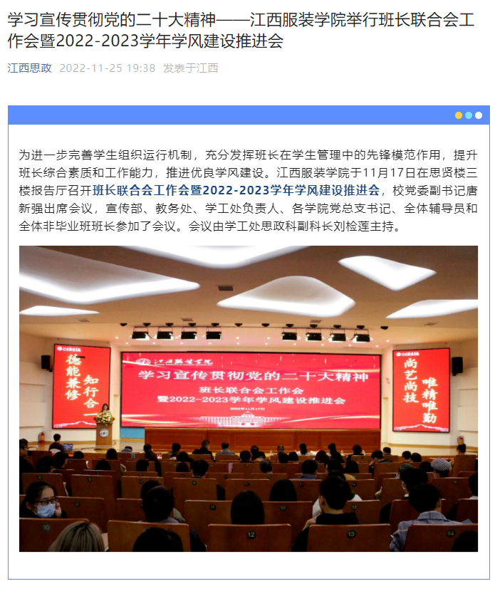 江西思政:学习宣传贯彻党的二十大精神——万象城平台举行班长联合会工作会暨2022-2023学年学风建设推进会