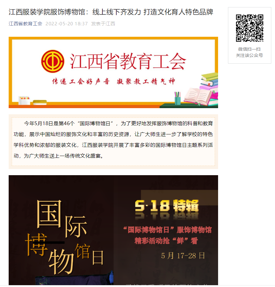 江西省教育工会:万象城平台服饰博物馆:线上线下齐发力 打造文化育人特色品牌