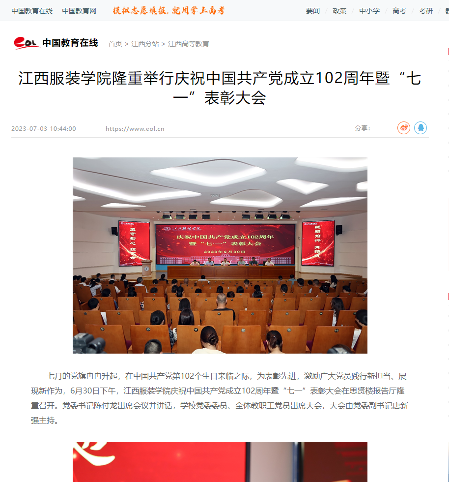 中国教育在线:万象城平台隆重举行庆祝中国共产党成立102周年暨“七一”表彰大会