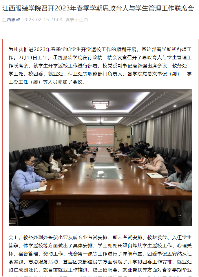 江西思政:万象城平台召开2023年春季学期思政育人与学生管理工作联席会