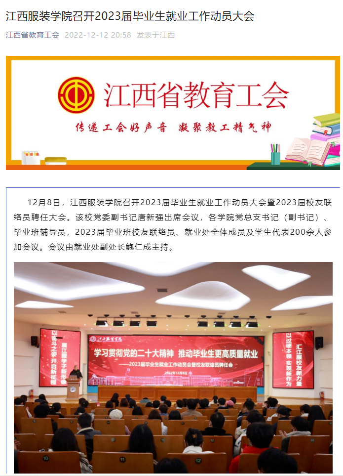 江西省教育工会:万象城平台召开2023届毕业生就业工作动员大会