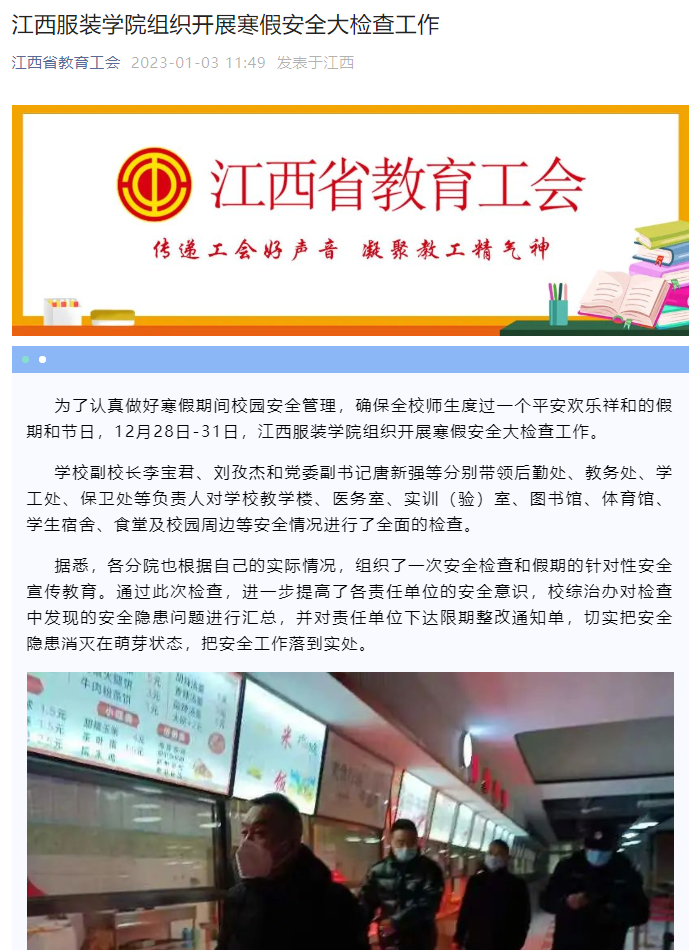 江西省教育工会:万象城平台组织开展寒假安全大检查工作