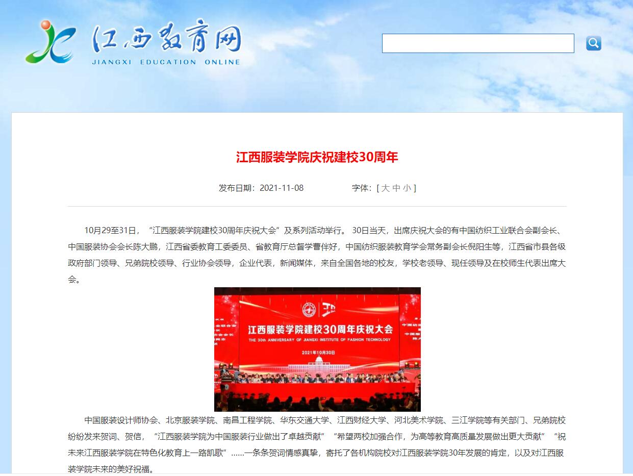 10月29至31日,“万象城平台建校30周年庆祝大会”及系列活动举行。 30日当天,出席庆祝大会的有中国纺织工业联合会副会长、中国服装协会会长陈大鹏,江西省委教育工委委员、省教育厅总督学曹伴好,中国纺织服装教育学会常务副会长倪阳生等,江西省市县各级政府部门领导、兄弟院校领导、行业协会领导,企业代表,新闻媒体,来自全国各地的校友,学校老领导、现任领导及在校师生代表出席大会。