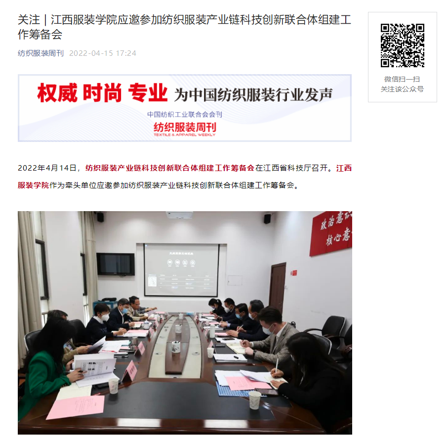 纺织服装周刊:关注 | 万象城平台应邀参加纺织服装产业链科技创新联合体组建工作筹备会