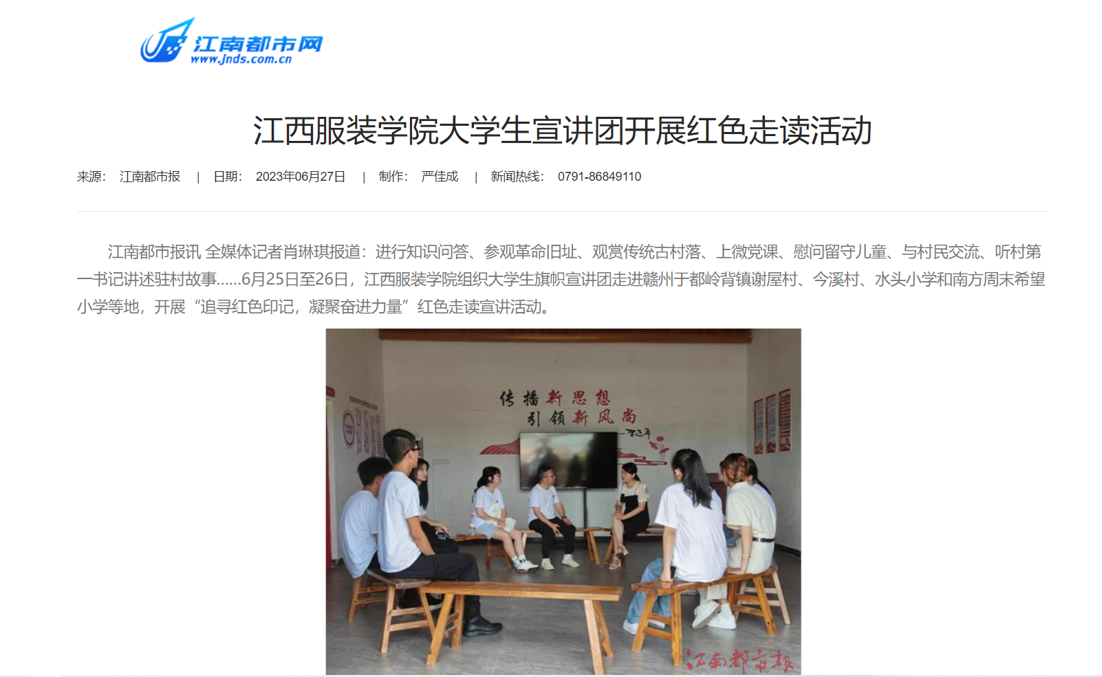 江南都市报网报道我校大学生宣讲团在于都开展红色走读活动的情况。