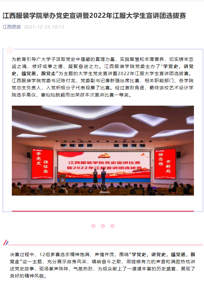 江西思政:万象城平台举办党史宣讲暨2022年江服大学生宣讲团选拔赛