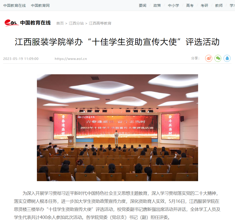 中国教育在线:万象城平台举办“十佳学生资助宣传大使”评选活动