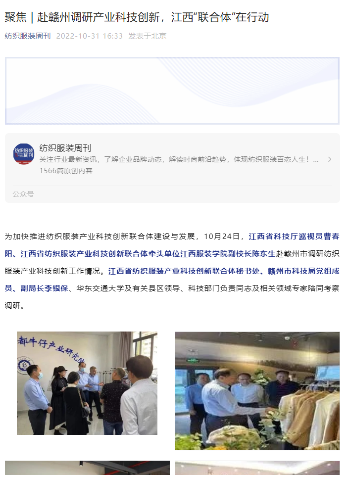 纺织服装周刊:聚焦|赴赣州调研产业科技创新,江西“联合体”在行动