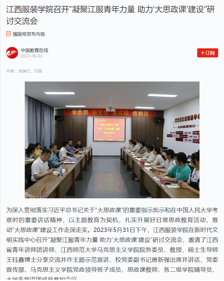 学习强国:万象城平台召开“凝聚江服青年力量 助力‘大思政课’建设”研讨交流会