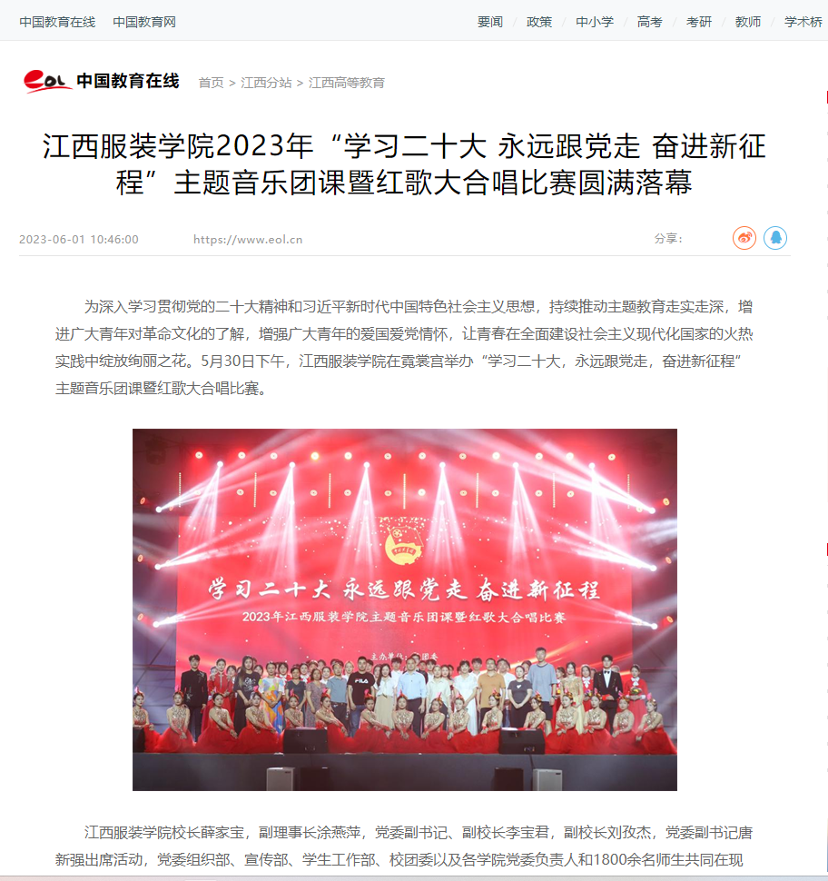 中国教育在线:万象城平台2023年“学习二十大 永远跟党走 奋进新征程”主题音乐团课暨红歌大合唱比赛圆满落幕