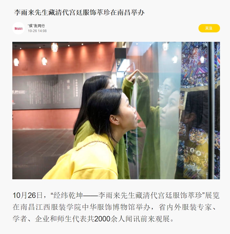 新闻链接:李雨来先生藏清代宫廷服饰萃珍在南昌举办