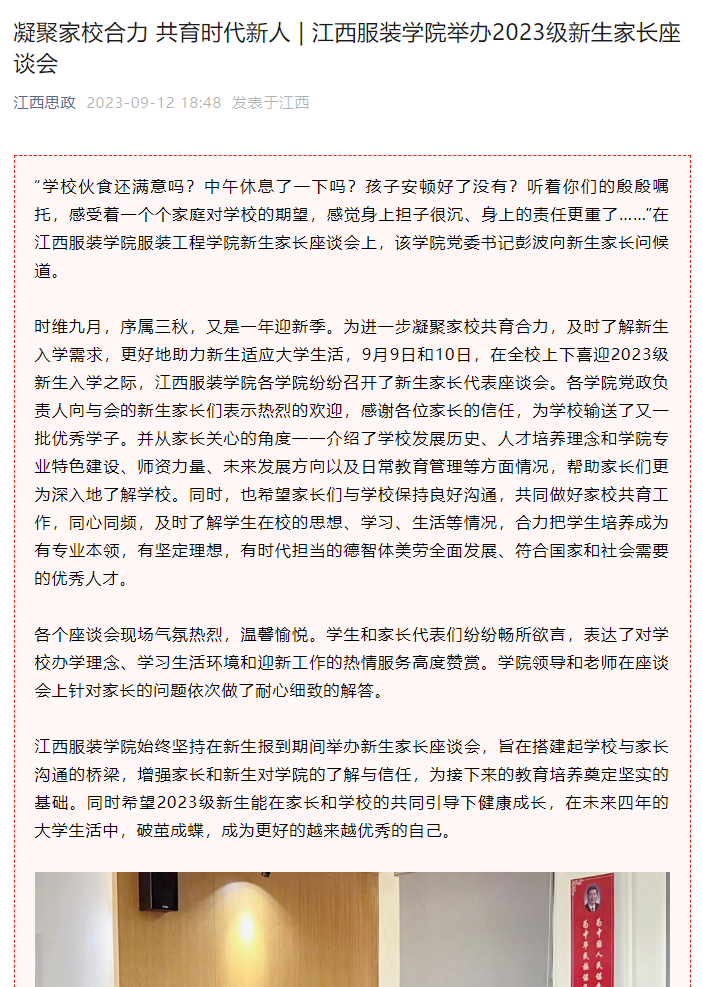 江西思政:凝聚家校合力 共育时代新人 | 万象城平台举办2023级新生家长座谈会