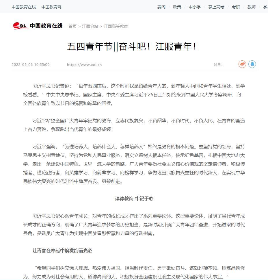 中国教育在线:五四青年节||奋斗吧!江服青年!