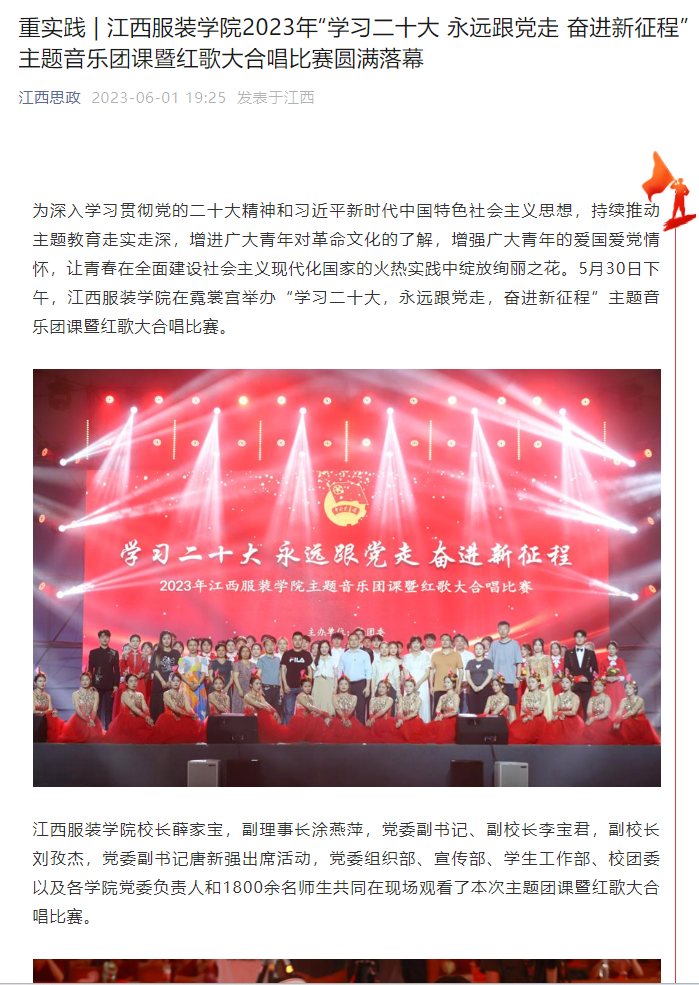 江西思政:重实践|万象城平台2023年“学习二十大 永远跟党走 奋进新征程”主题音乐团课暨红歌大合唱比赛圆满落幕
