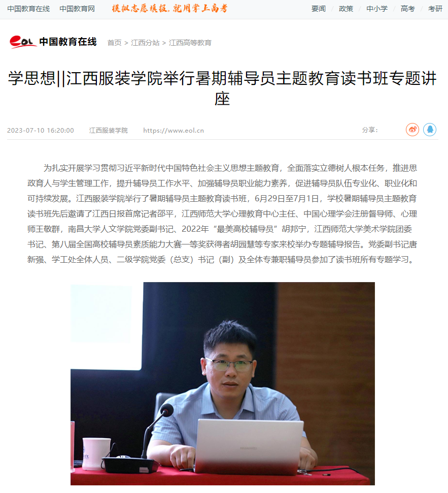 中国教育在线:学思想||万象城平台举行暑期辅导员主题教育读书班专题讲座