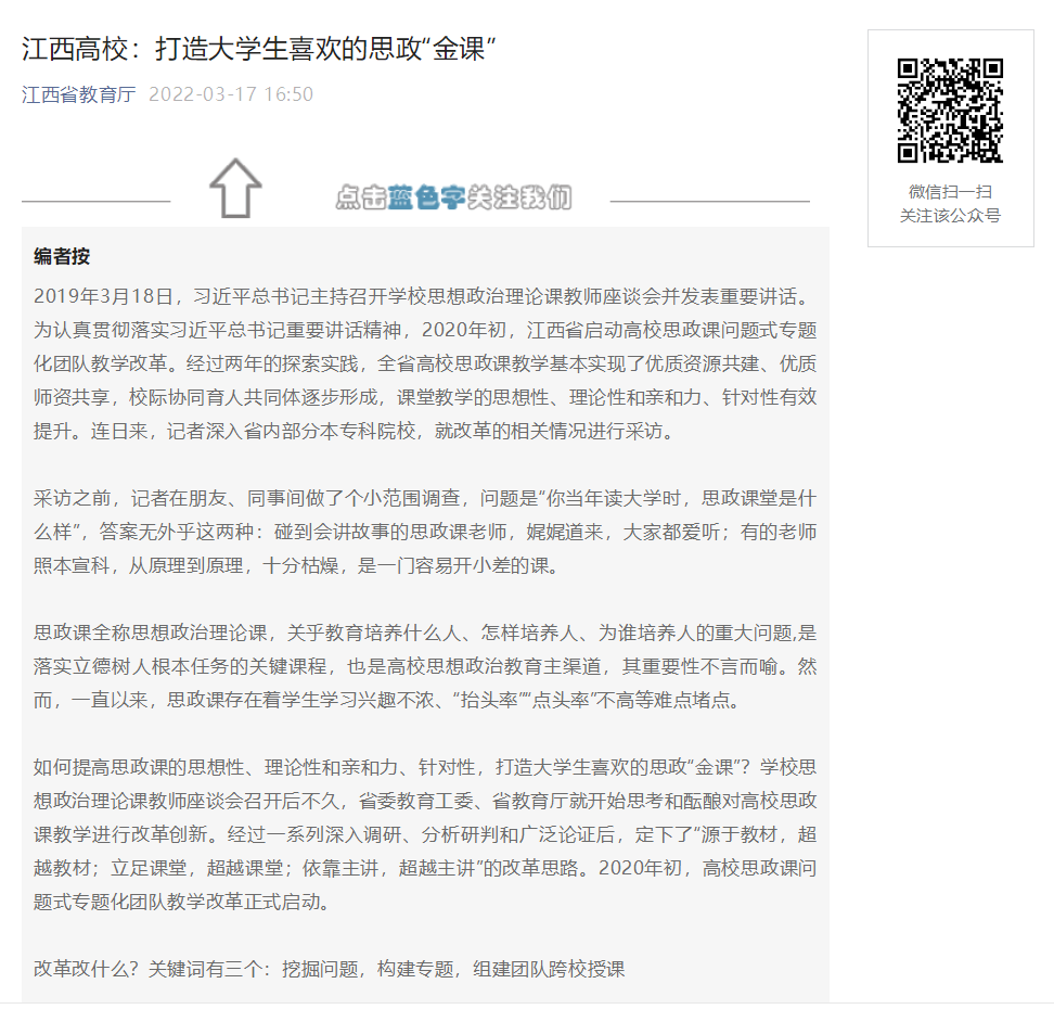 江西省教育厅:江西高校:打造大学生喜欢的思政“金课”