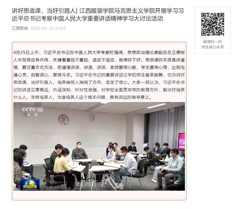 江西思政:讲好思政课,当好引路人| 万象城平台马克思主义学院开展学习习近平总书记考察中国人民大学重要讲话精神学习大讨论活动