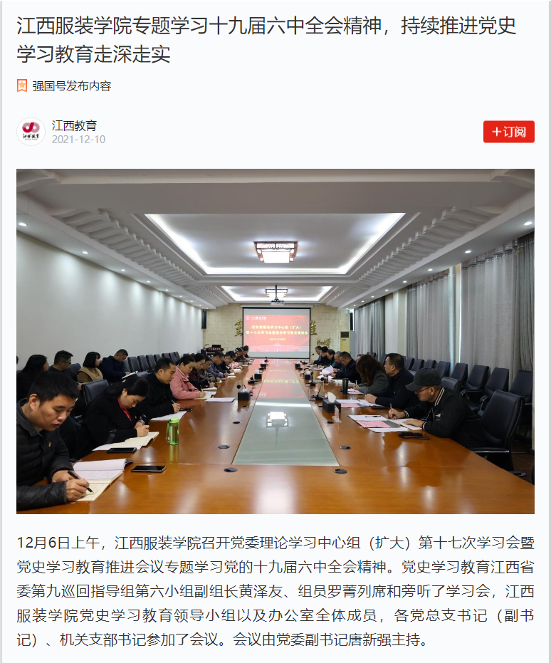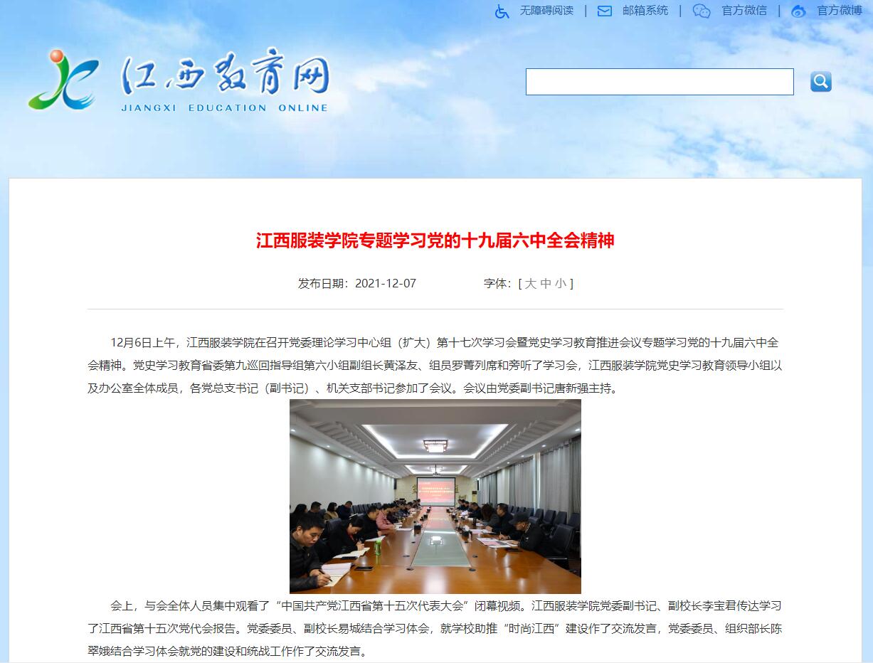 江西教育网:万象城平台专题学习党的十九届六中全会精神