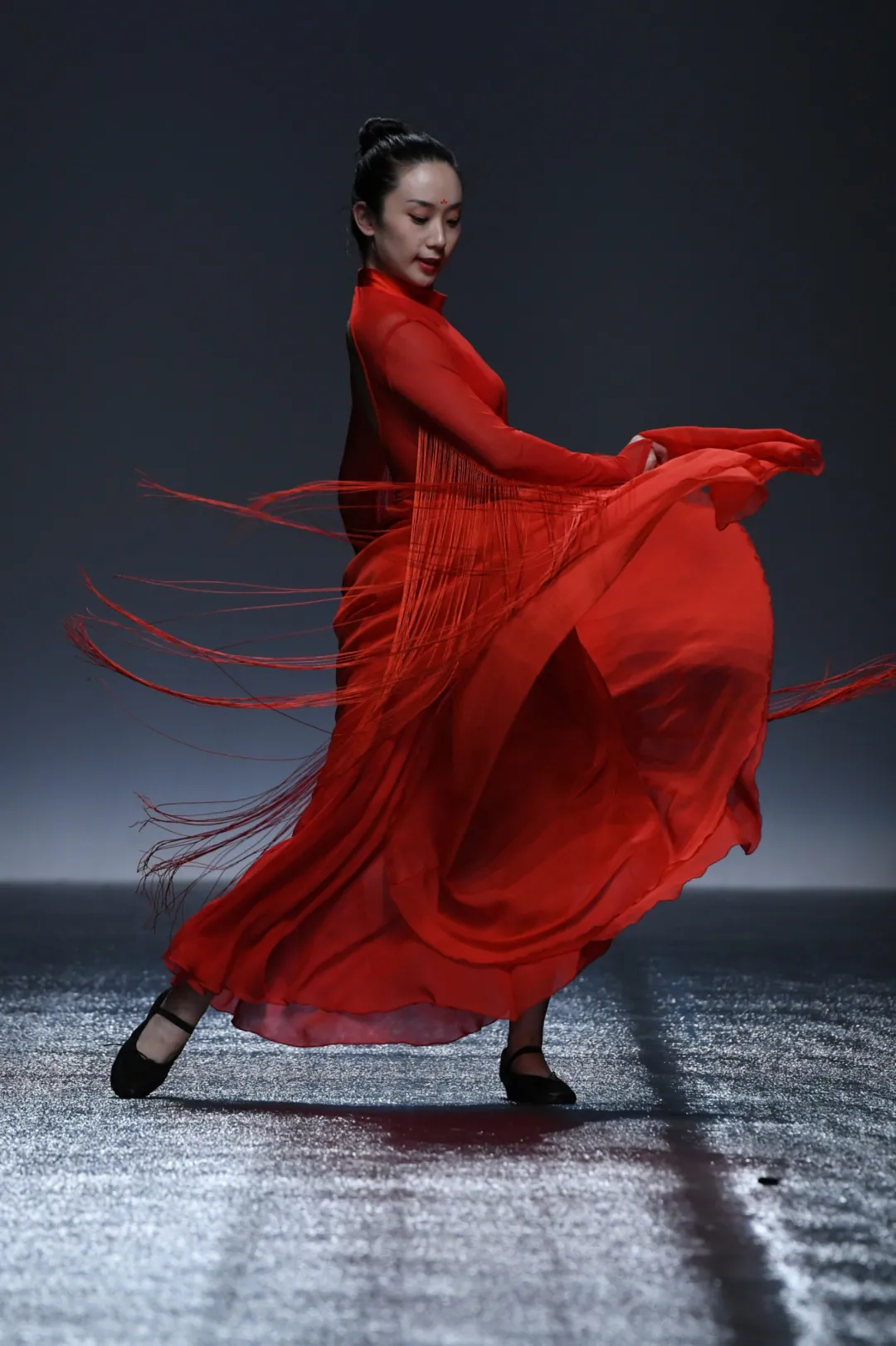 发布会结尾,一袭红衣的舞者在台上深情演绎了一段“卅之舞”,手臂上的流苏随着音乐节奏舞动,兼具视觉性与流动感,与学校“舞于T台”的主题进行了完美的呼应。而后,设计师们带着他们的作品悉数登场,用激情和活力再次点燃全场。