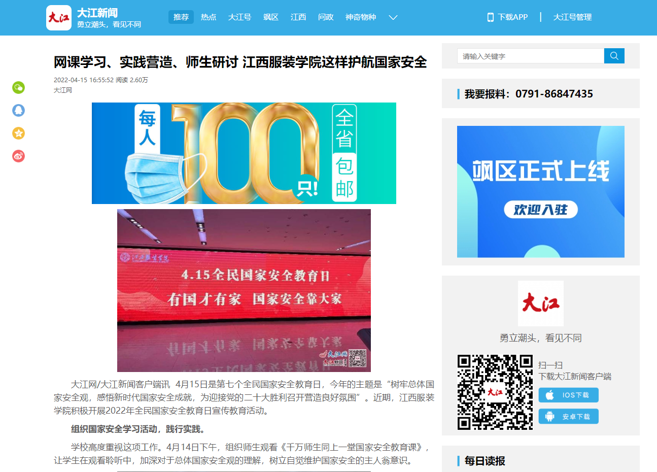 大江网:网课学习、实践营造、师生研讨 万象城平台这样护航国家安全