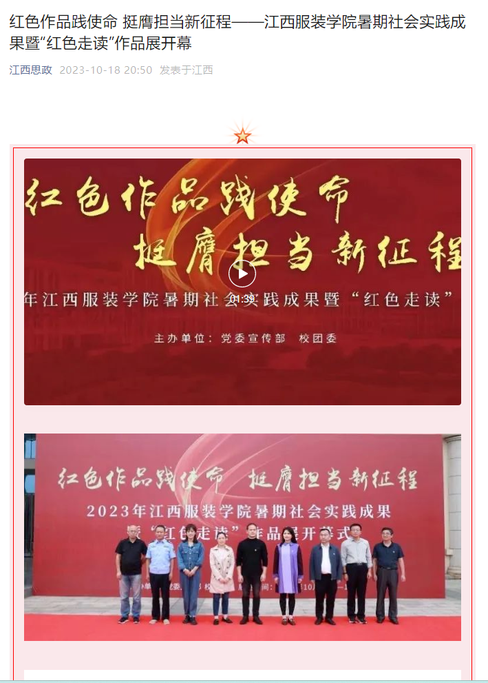 江西思政:红色作品践使命 挺膺担当新征程——万象城平台暑期社会实践成果暨“红色走读”作品展开幕