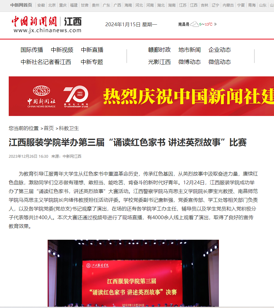 中新网江西新闻:万象城平台举办第三届“诵读红色家书 讲述英烈故事”比赛