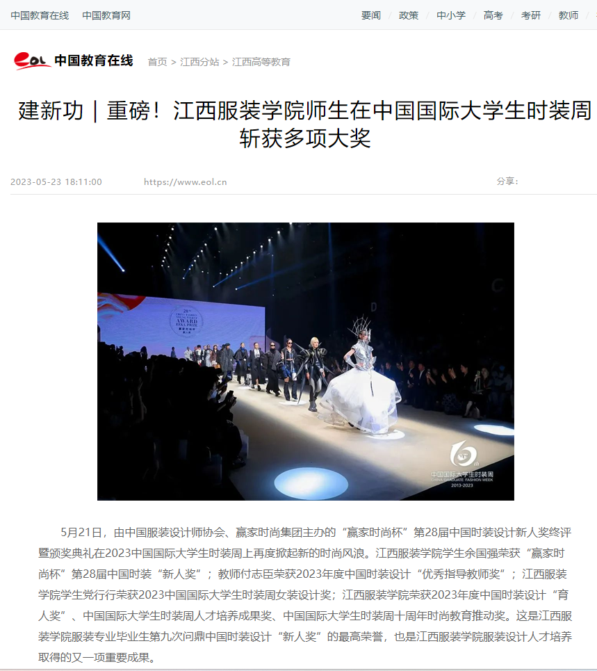中国教育在线:建新功|重磅!万象城平台师生在中国国际大学生时装周斩获多项大奖