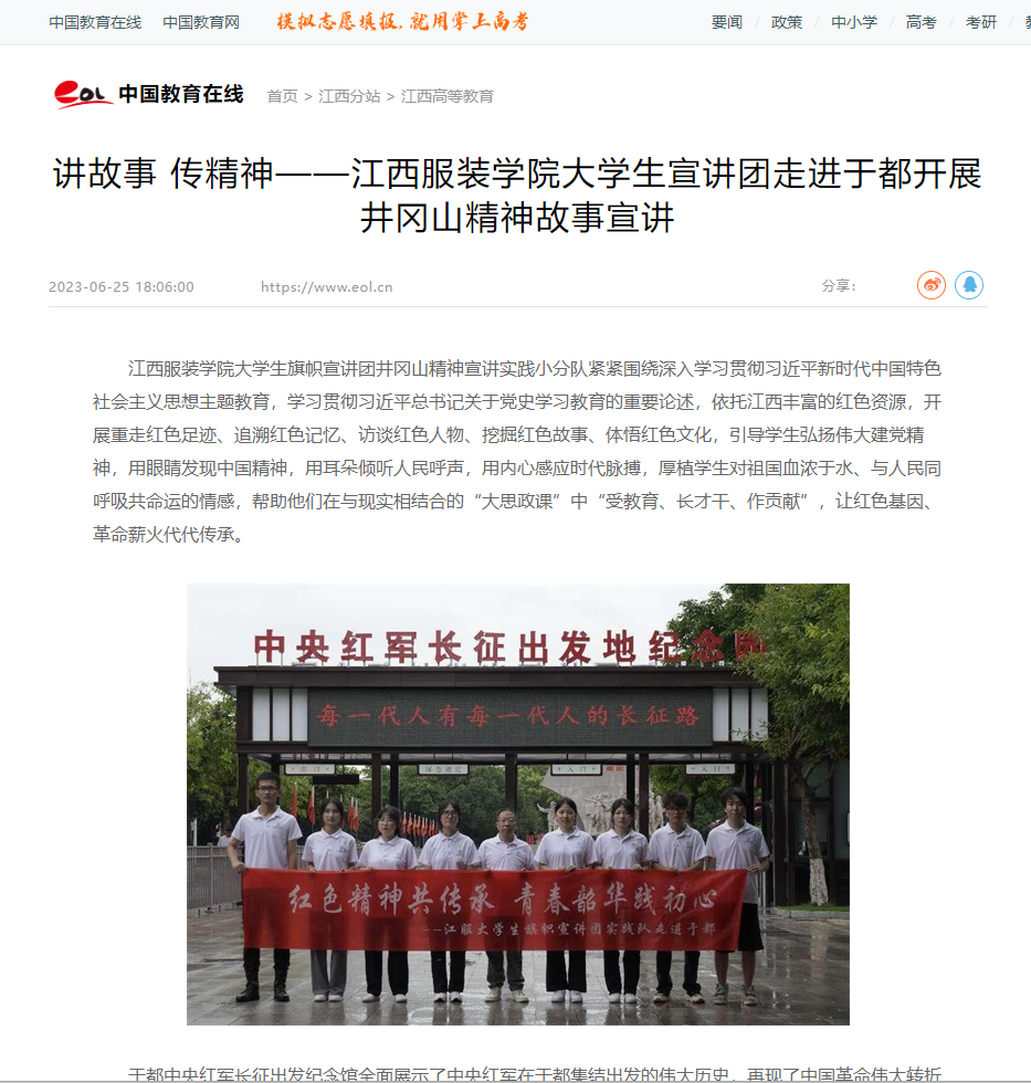 中国教育在线:讲故事 传精神——万象城平台大学生宣讲团走进于都开展井冈山精神故事宣讲