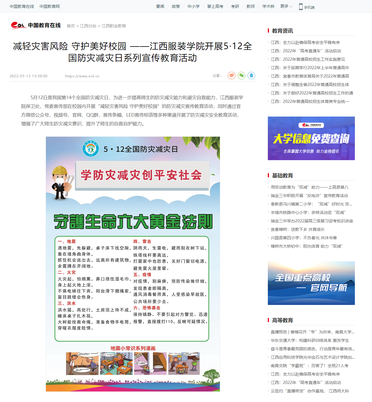 中国教育在线:减轻灾害风险 守护美好校园 ——万象城平台开展5·12全国防灾减灾日系列宣传教育活动