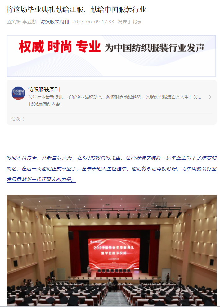 纺织服装周刊:将这场毕业典礼献给江服、献给中国服装行业