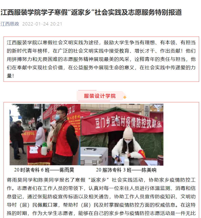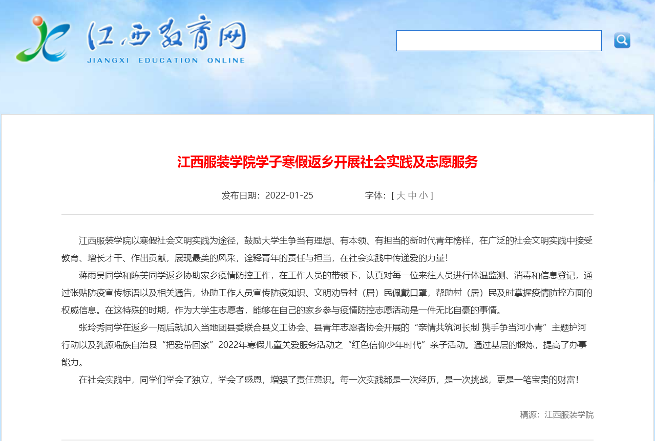 江西教育网:万象城平台学子寒假返乡开展社会实践及志愿服务