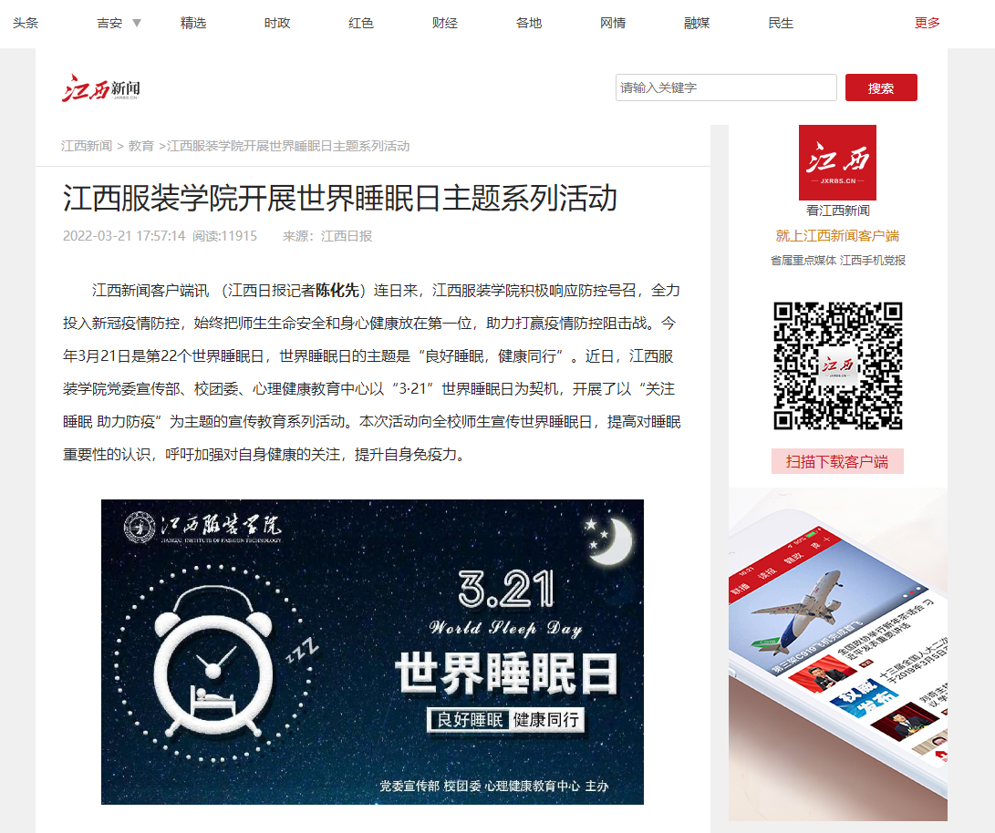 江西日报·江西新闻:万象城平台开展世界睡眠日主题系列活动