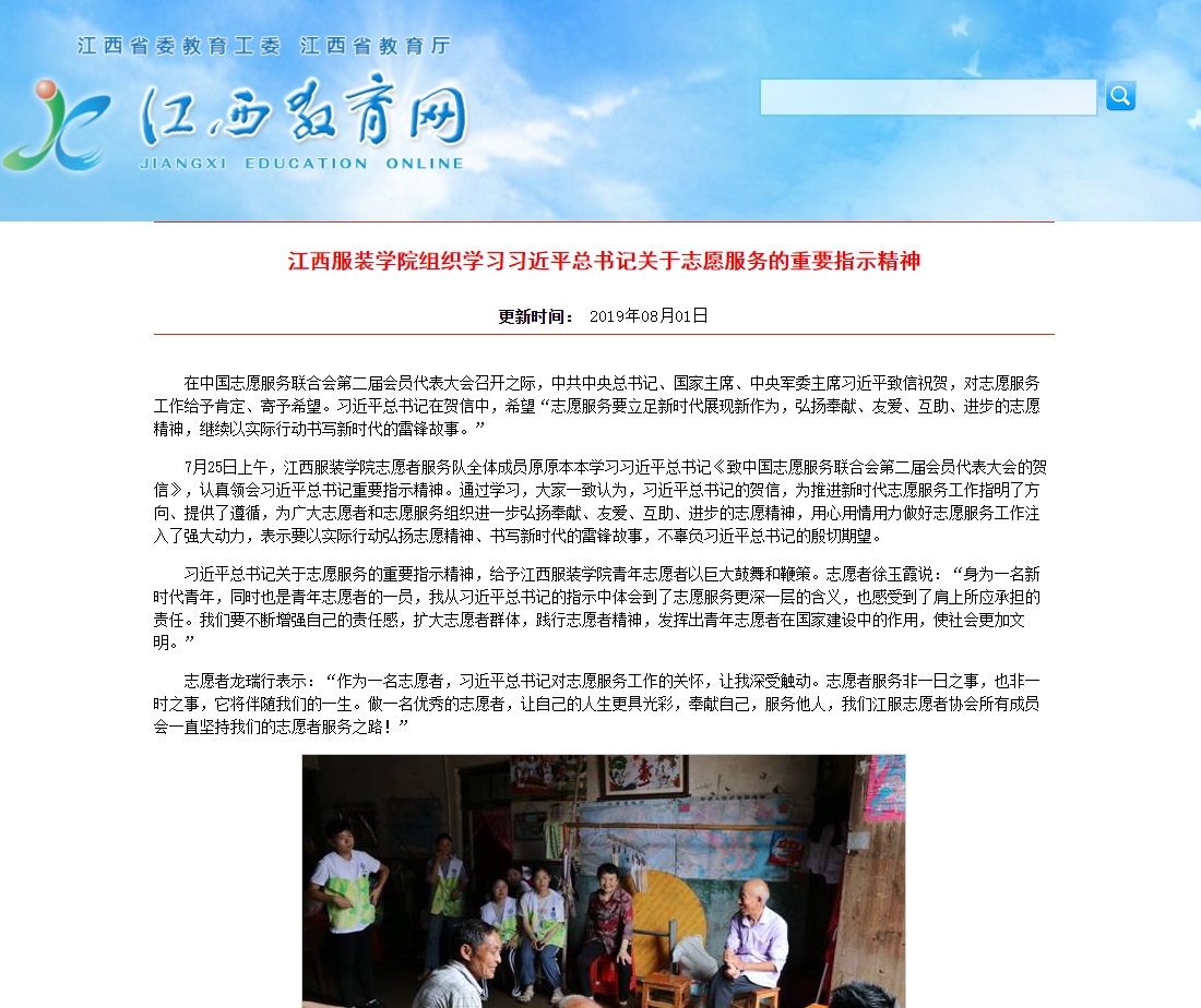 江西教育网对此进行了报道,以下为新闻链接:万象城平台组织学习习近平总书记关于志愿服务的重要指示精神