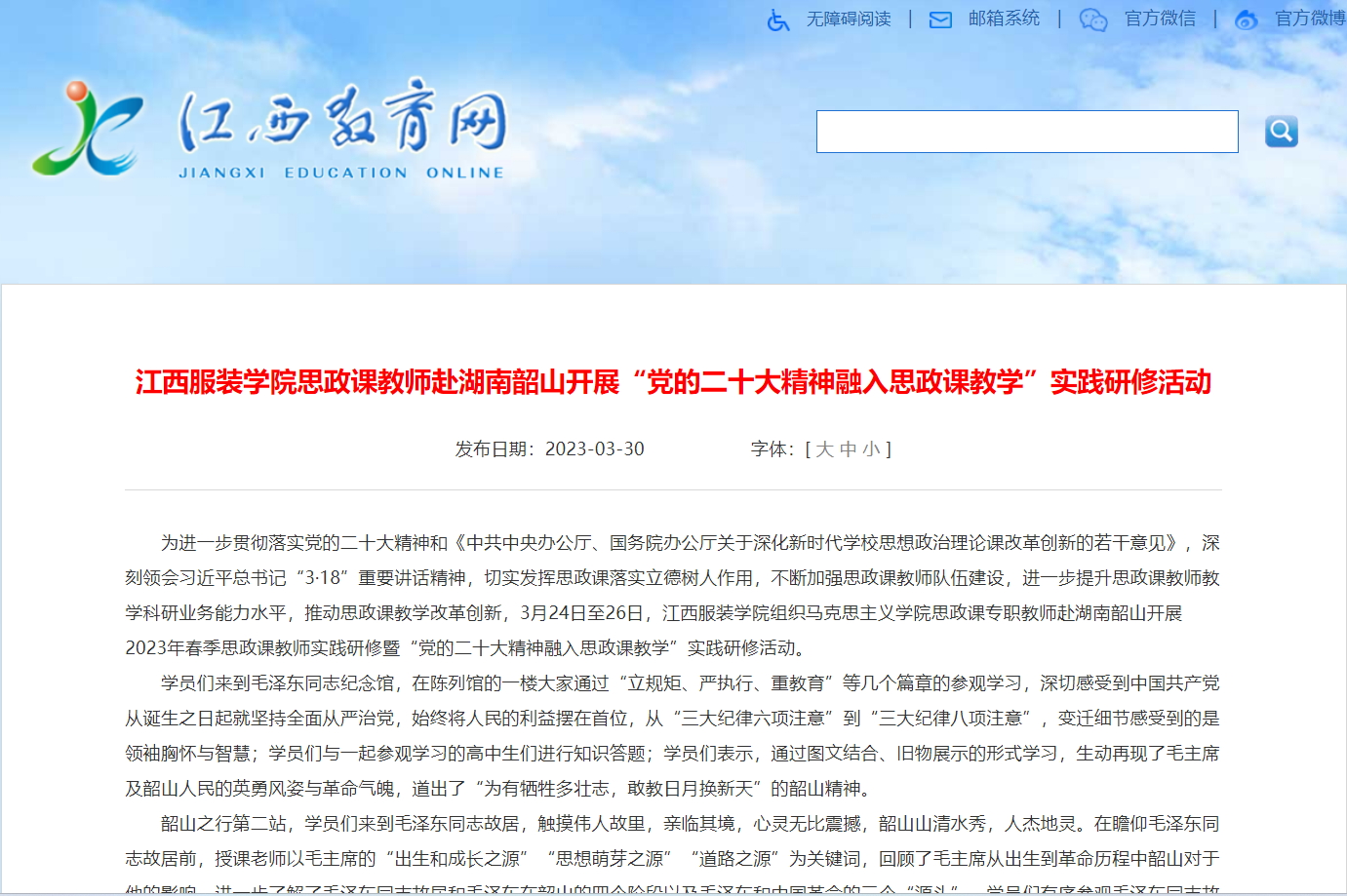 江西省教育厅官网:万象城平台思政课教师赴湖南韶山开展“党的二十大精神融入思政课教学”实践研修活动