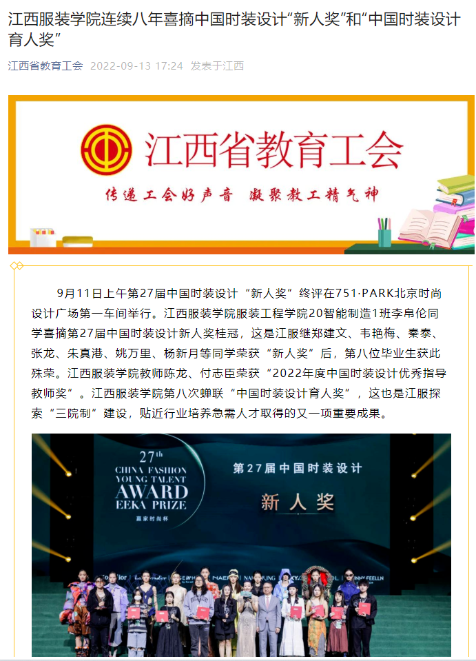 江西省教育工会:万象城平台连续八年喜摘中国时装设计“新人奖”和“中国时装设计育人奖”
