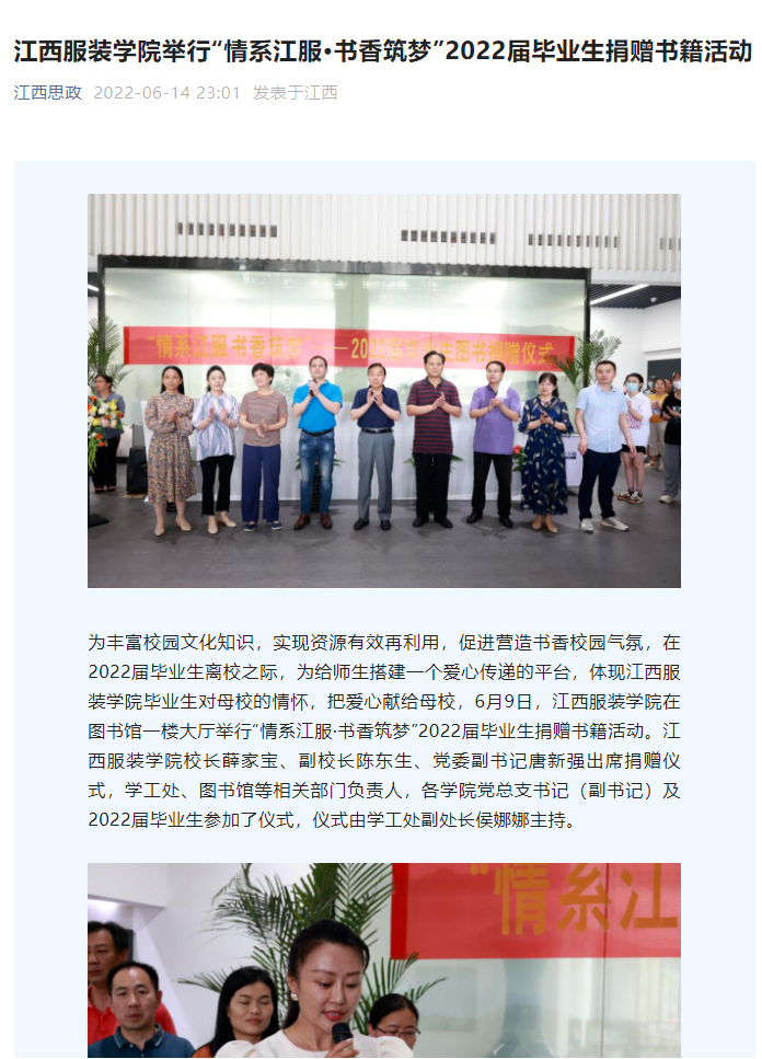 江西思政:万象城平台举行“情系江服·书香筑梦”2022届毕业生捐赠书籍活动
