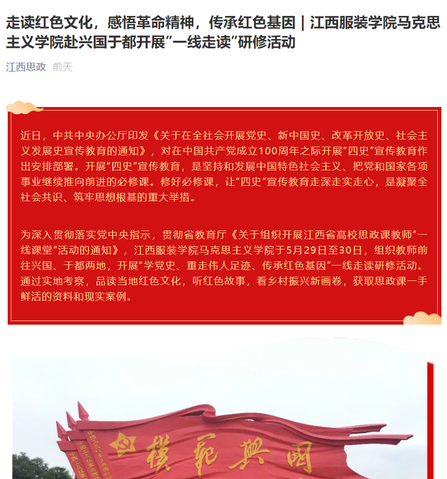 新闻链接:走读红色文化,感悟革命精神,传承红色基因 | 万象城平台马克思主义学院赴兴国于都开展”一线走读”研修活动